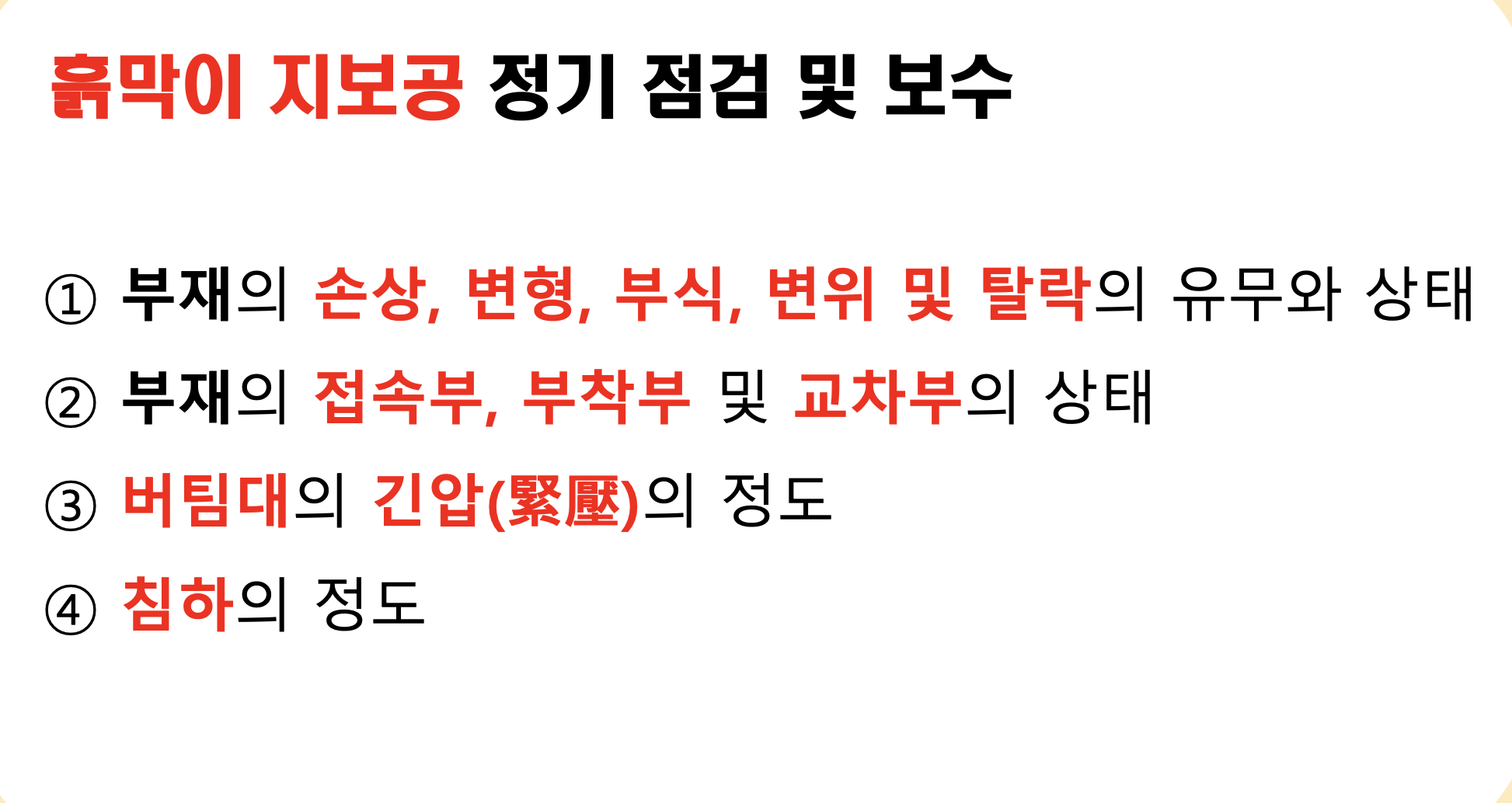 - 인근에서 굴착, 항타작업 등으로 침하, 균열, 붕괴의 위험 예상